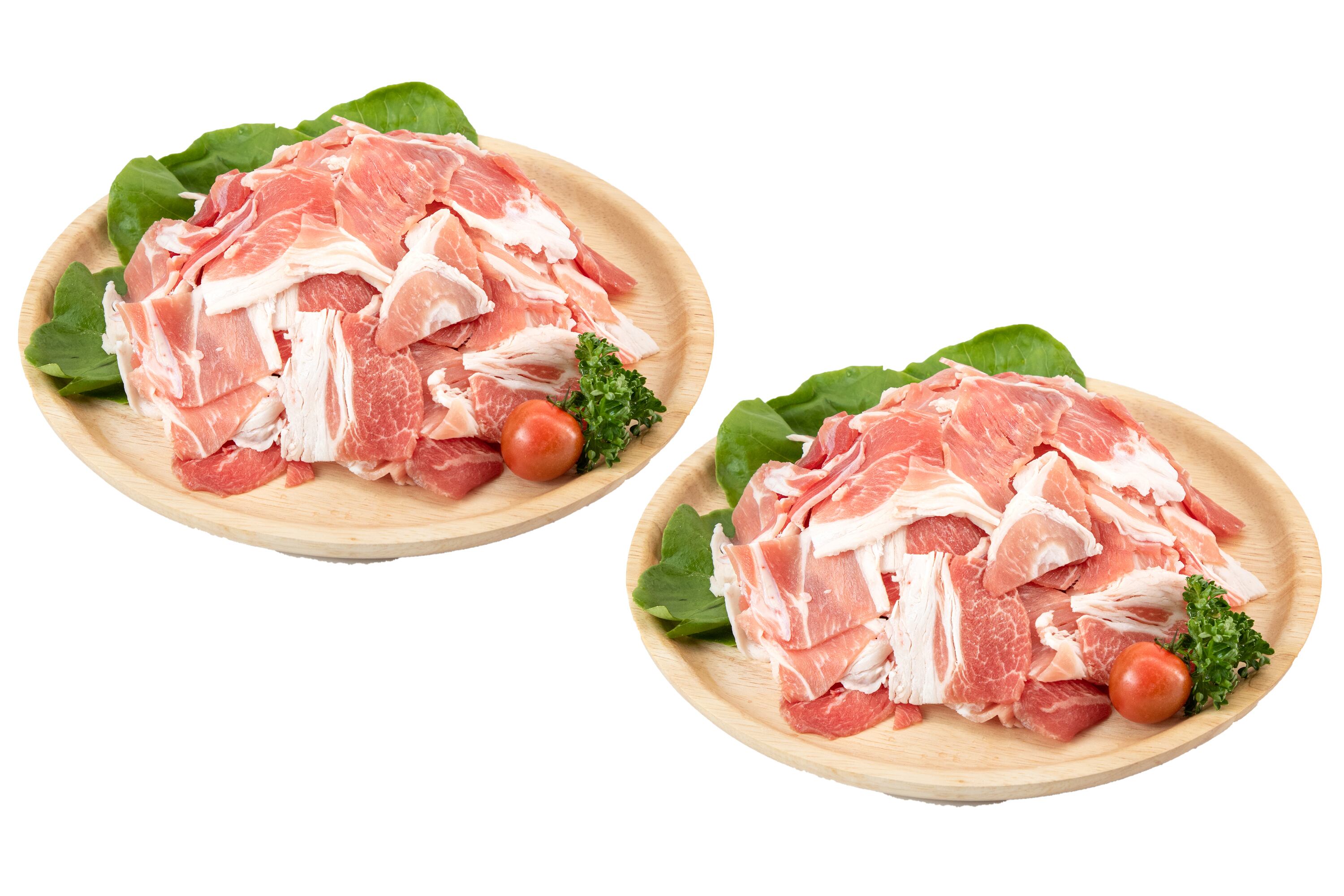 放牧和豚のお得なコマ切れ1000g(500gパック×2)を用意しました。